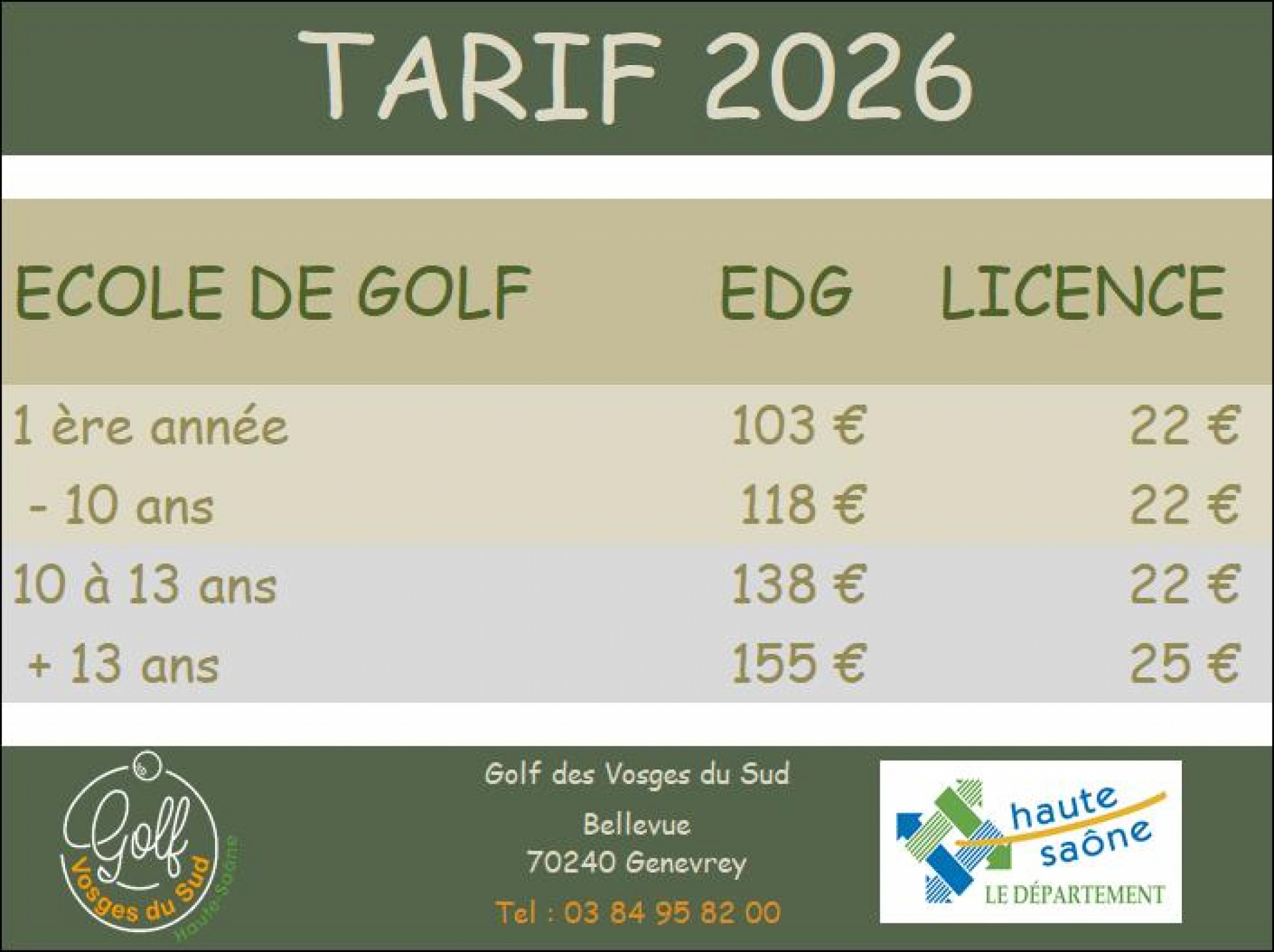 Pour tout renseignement, contactez nous au 03 84 95 82 00.