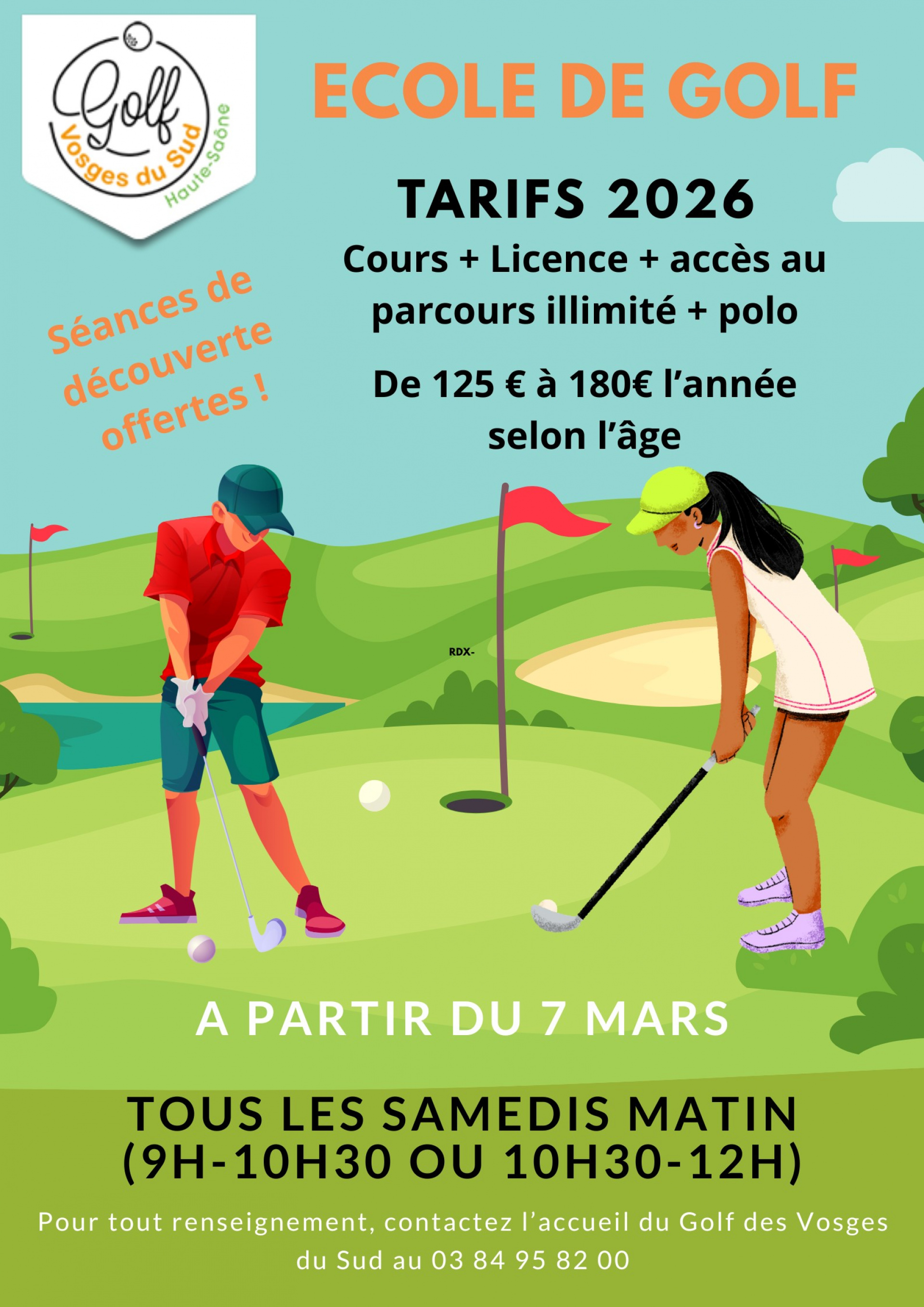 L'école de golf est ouverte à tous les enfants (filles et garçons) de 6 à 18 ans.