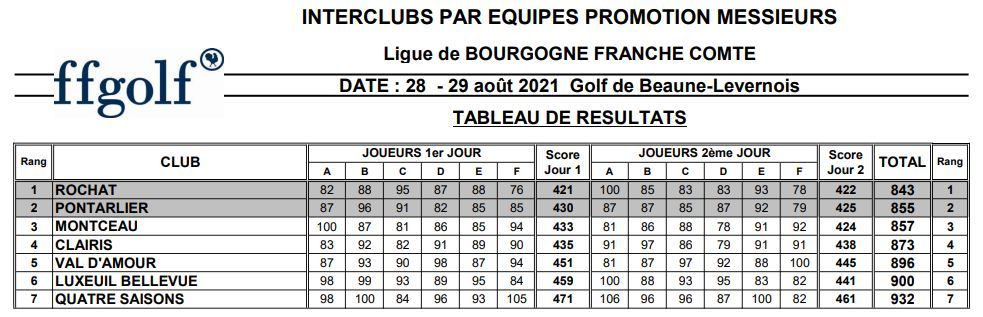Les INTERCLUBS PAR EQUIPE PROMOTION MESSIEURS de la Ligue de BOURGOGNE FRANCHE COMTE se déroulaient les 28 & 29 août 2021 au Golf de Beaune-Levernois.