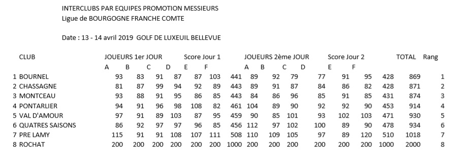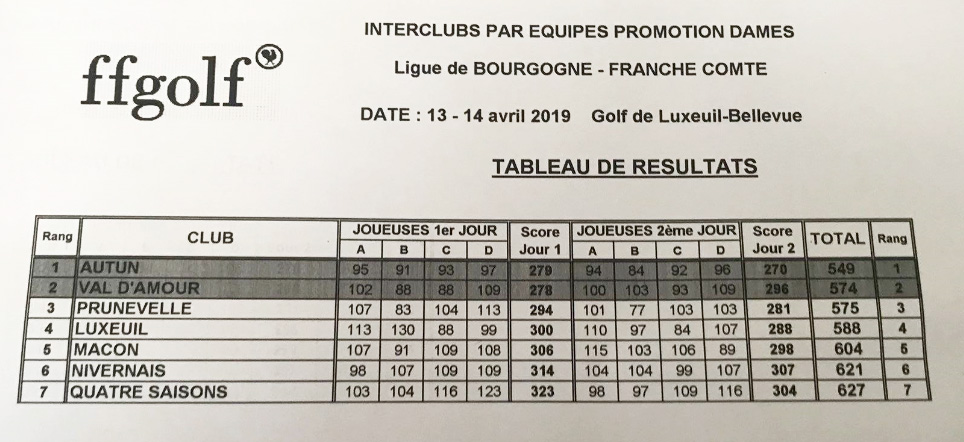 Le championnat Interclubs par équipe a eu lieu le week end du 13 & 14 avril au golf de Luxeuil Bellevue et a réuni près d'une centaine de joueuses et joueurs de l'Est de la France.