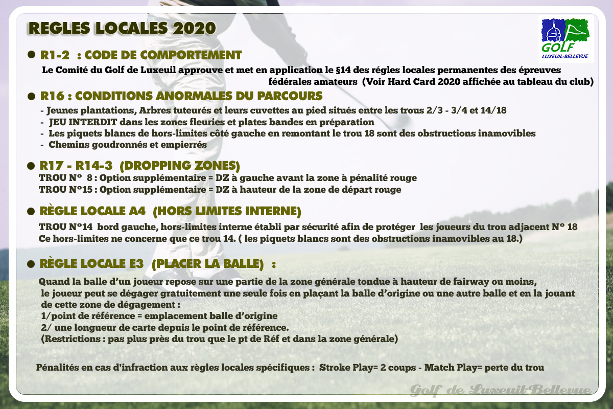Règles locales 2020 : mise à jour (on place à une longueur de carte sur les zones tondues ras)