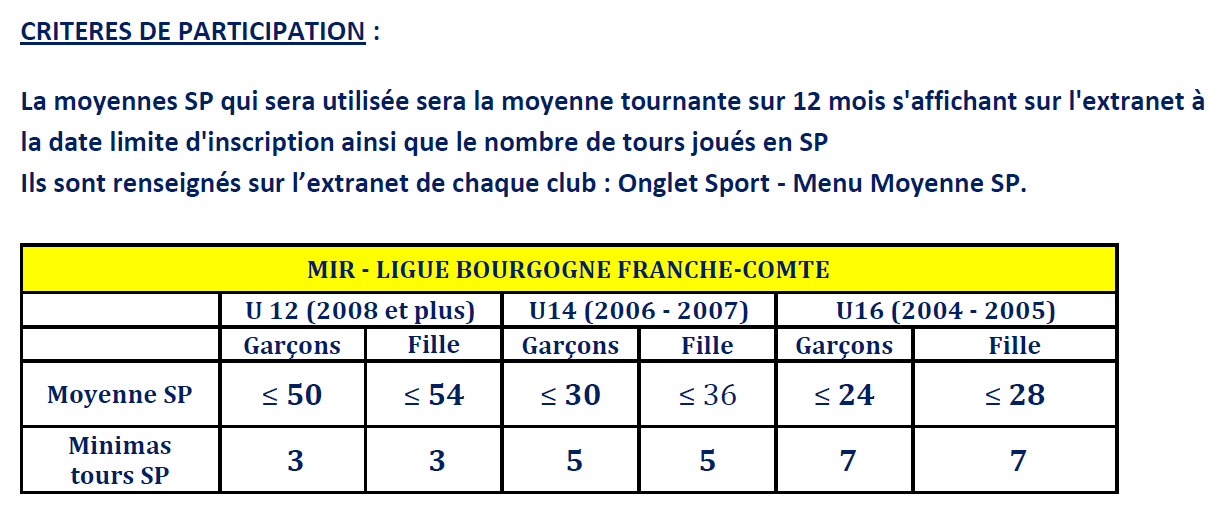 Moyennes de strokeplay nécessaires pour participer :